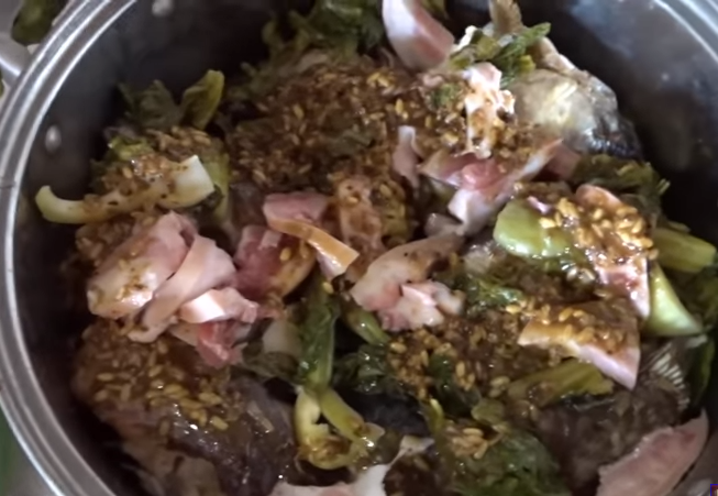 – Cá làm sạch, chặt khúc vừa ăn và ướp chút muối hột cho chắc cá. Sau đó đem cá đi chiên sơ cho cá bớt tanh.